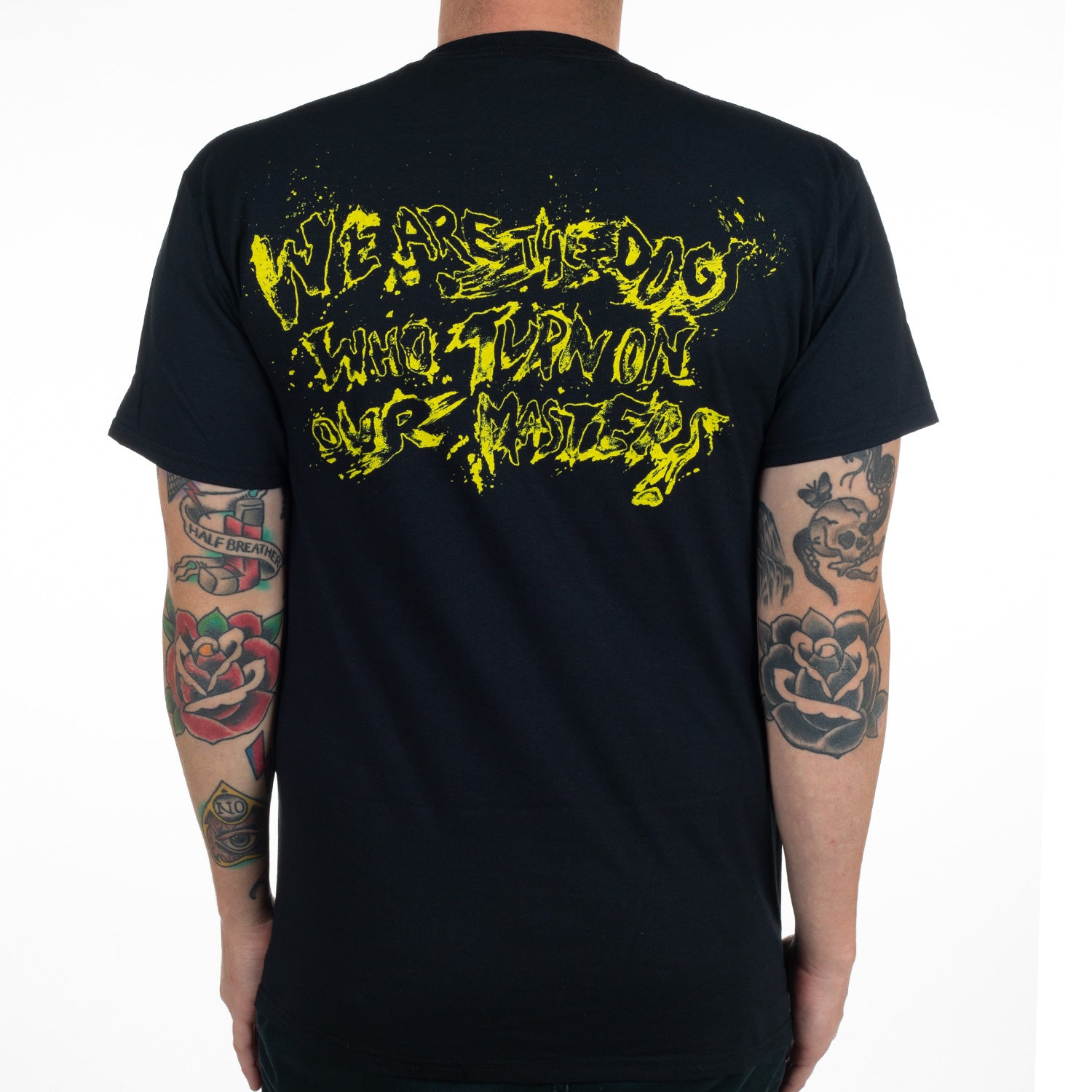 Unisex (men's) sizingBlack t-shirt with Toxic Holocaust Dogs design on the front and back in white and yellow color.